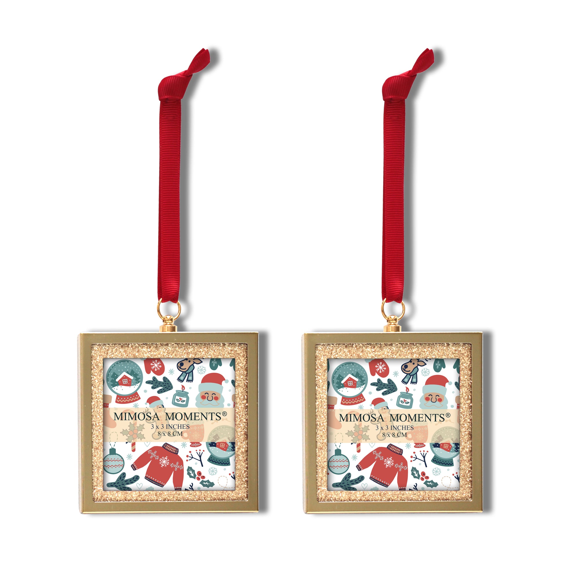 Bling Picture Frame Ornaments for Christmas Tree & Holidays (3x3" photo, Set of 2)